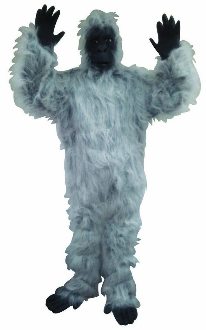Silver Gorilla Mascot Costume Includes Plush Faux Fur Body, Latex mask, Latex mitts and Latex feet.
