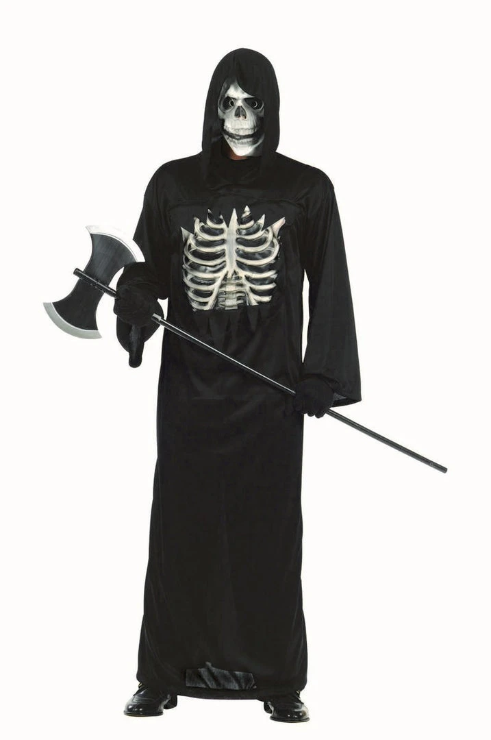 Costume Includes Black Hooded Robe with 3-D EVA Bones and EVA Mask. Size: Adult One Size Fits Most. Axe Not Included