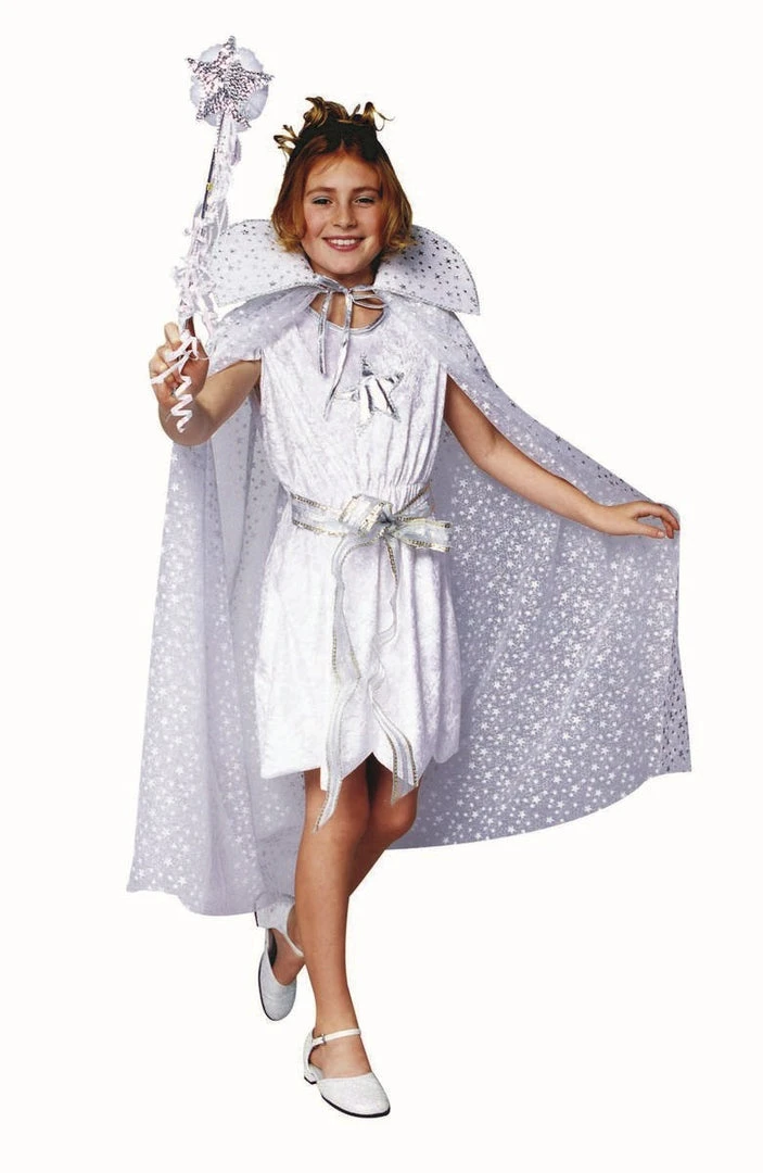 Girls Halloween Costume Includes White Sleeveless Velvet Dress, Glitter Cape with Collar & Sash. Wand Not Included.