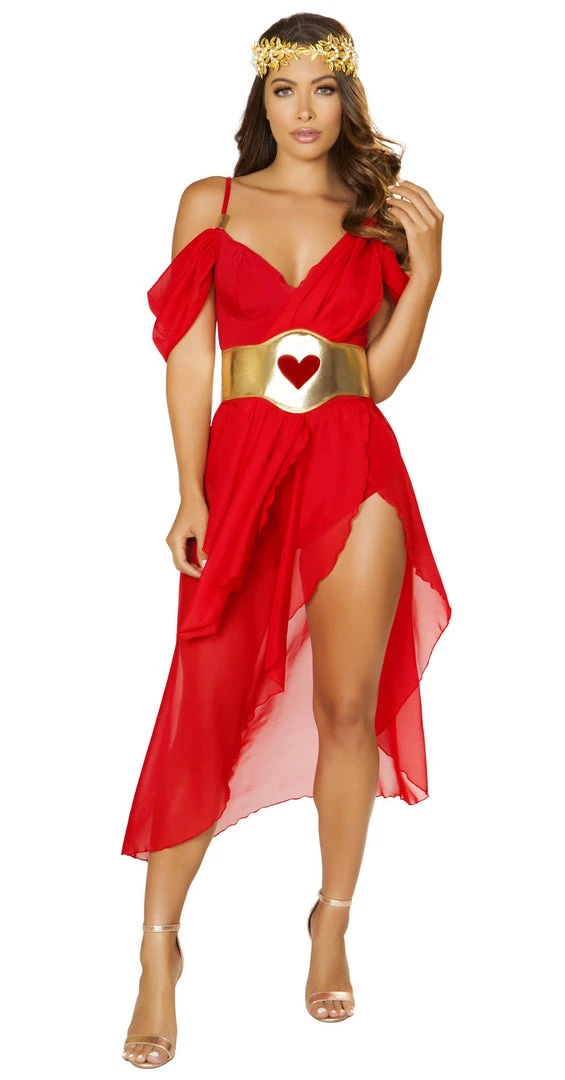 Includes Romper with Draped Sleeves, Slit Skirt, & Waist Band with Heart. Headband not included, sold separately.Â